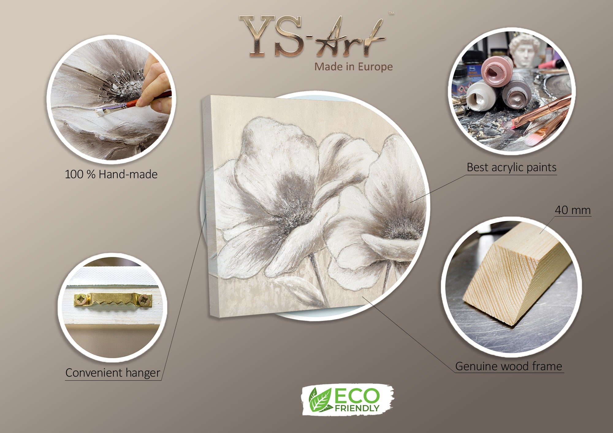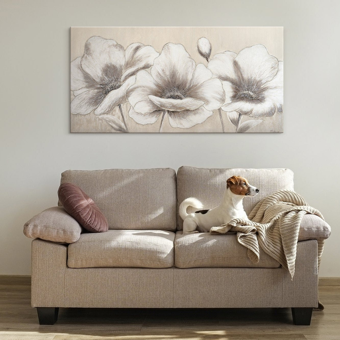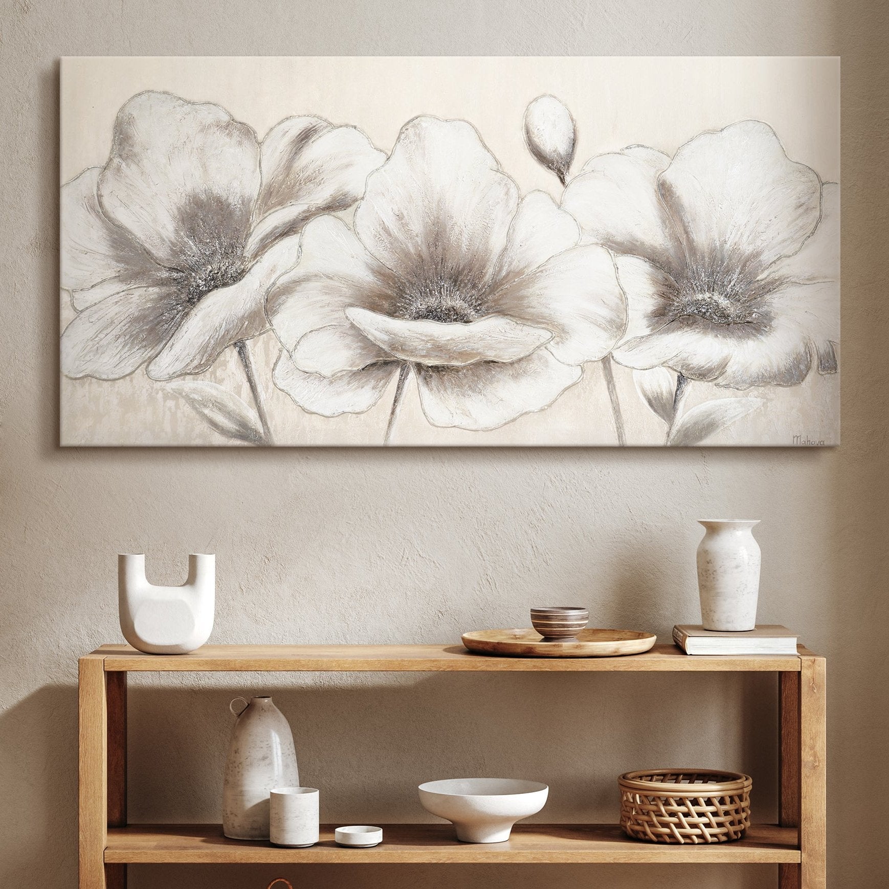 Dit handgeschilderde acryl schilderij brengt de tijdloze schoonheid van bloemen naar uw huis. De gedetailleerde bloemenmotieven in zachte en harmonieuze kleuren creëren een rustige en elegante sfeer. Perfect voor moderne en klassieke interieurs, het schilderij voegt een vleugje natuur en rust toe aan elke kamer.