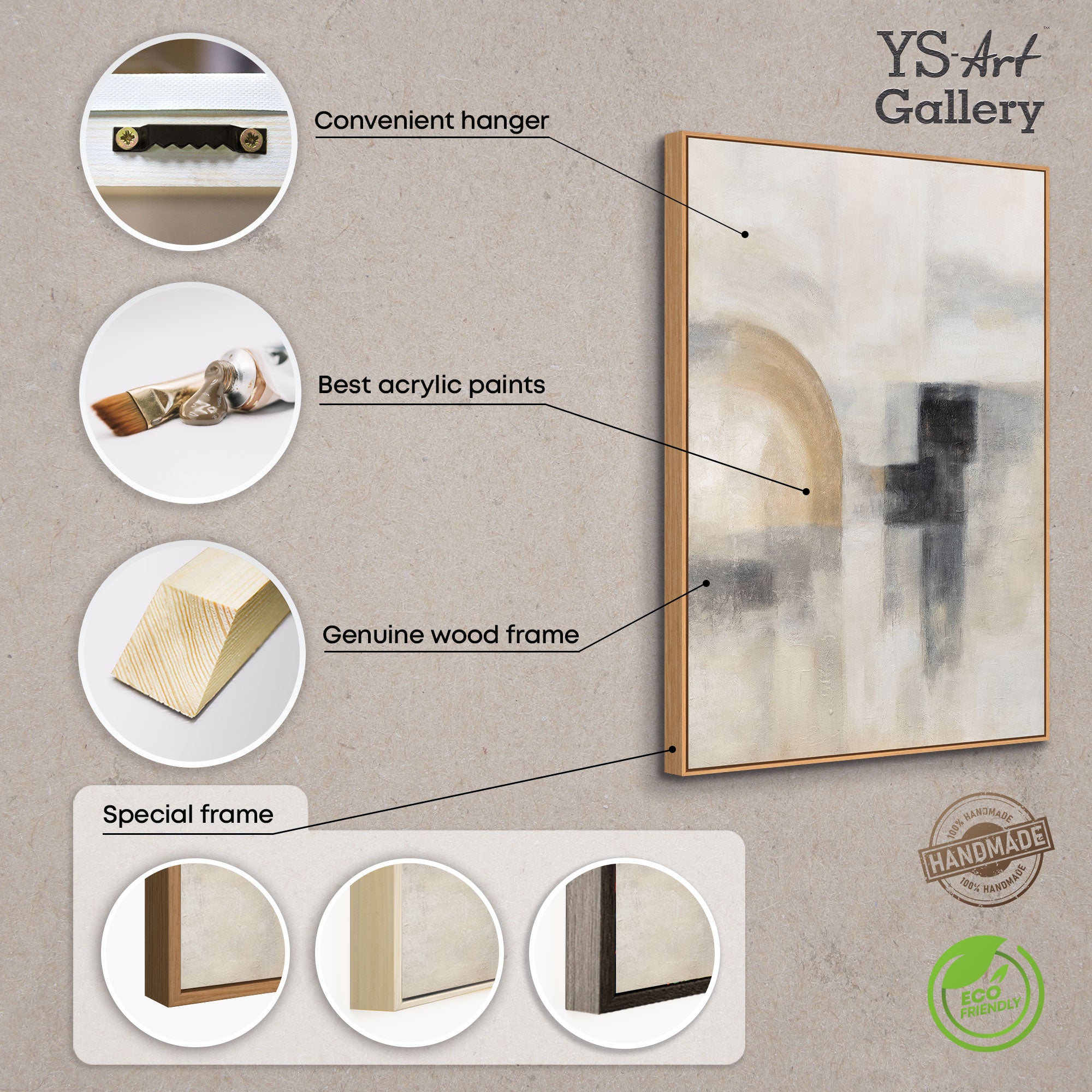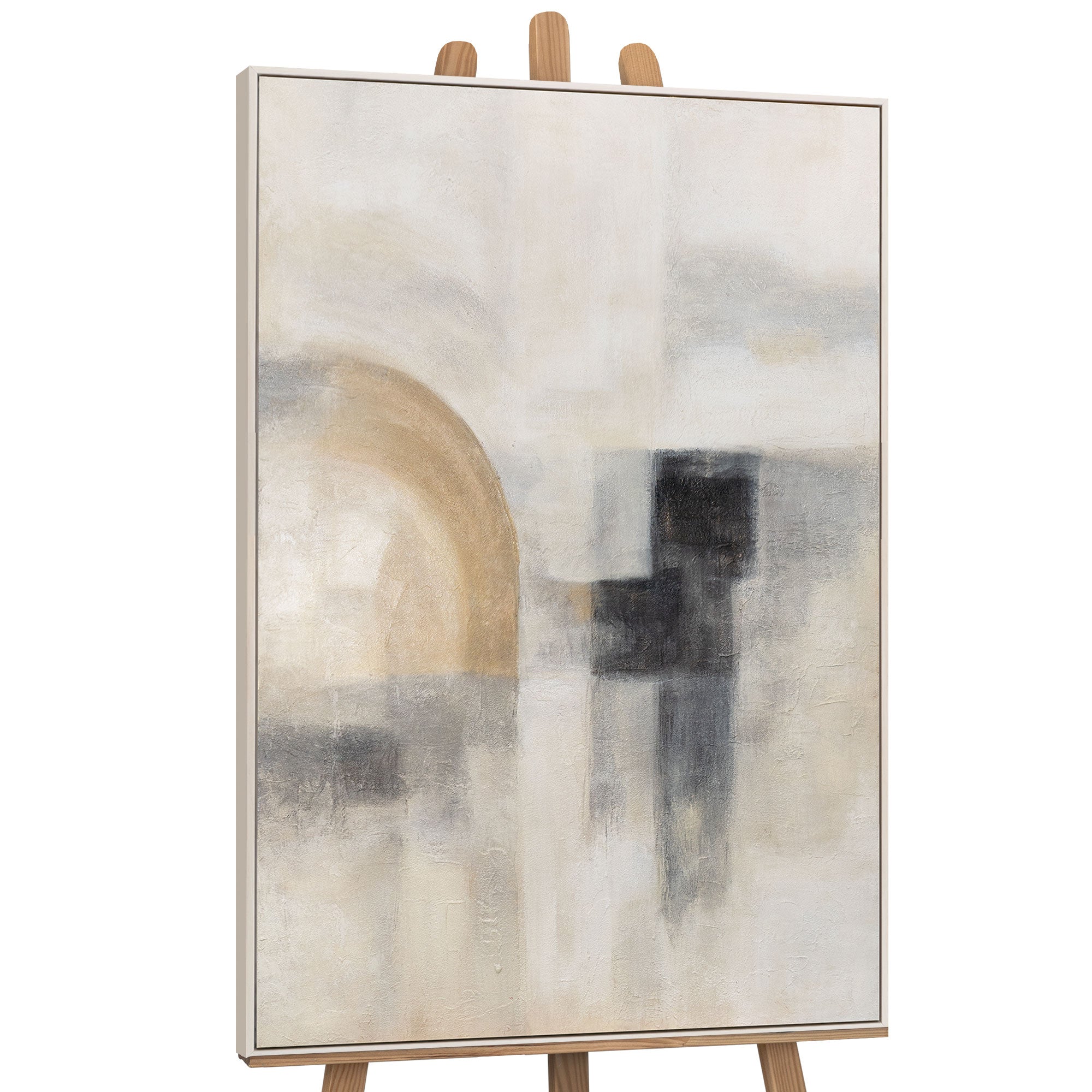 „Spookachtig Licht” is een handgeschilderd acryl schilderij op canvas, dat door zijn zachte, minimalistische kleurstelling opvalt. Zachte tinten in beige, grijs en crème vormen een harmonieuze basis, terwijl geometrische suggesties en een halve cirkelvormige accent in goud-bruin het schilderij diepte en balans geven. Het gestructureerde oppervlak versterkt de zintuiglijke uitstraling en maakt elk werk uniek.