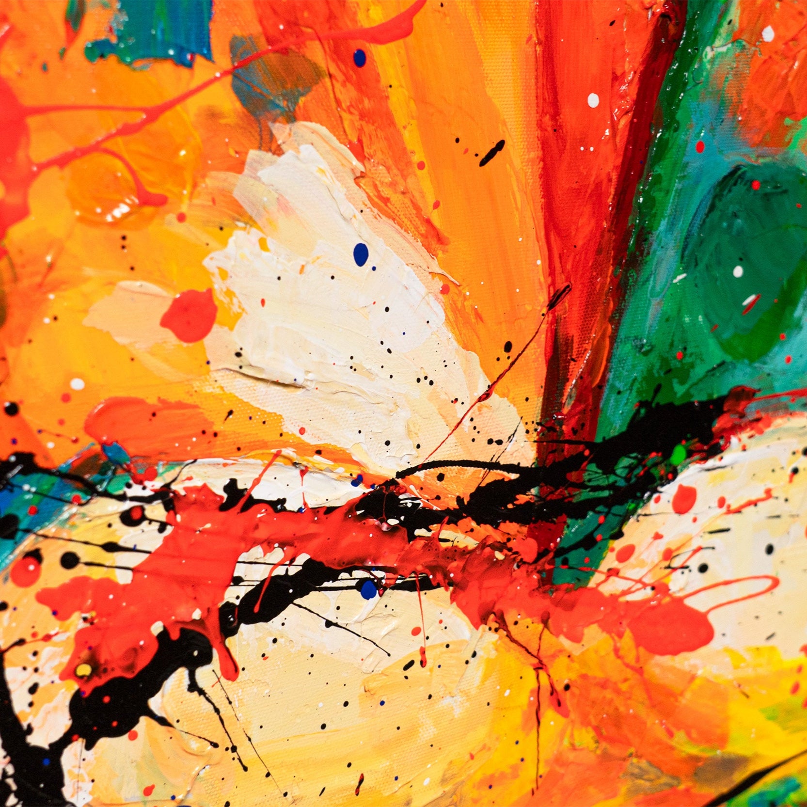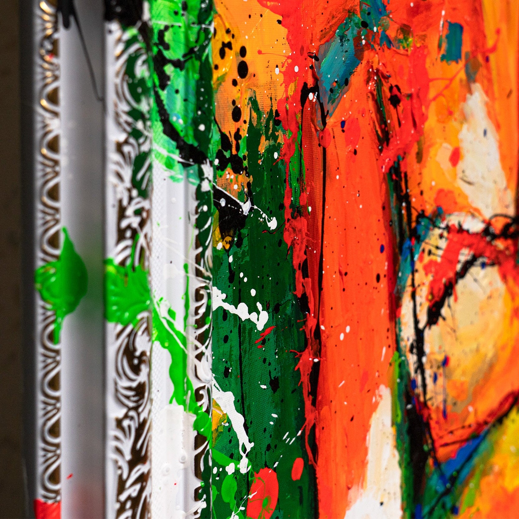 Perfect voor liefhebbers van moderne wanddecoratie voor de woonkamer, kleurrijke abstracte kunst en exclusieve schilderijen. Dit unieke canvas brengt passie, elegantie en artistieke vrijheid in elk interieur.