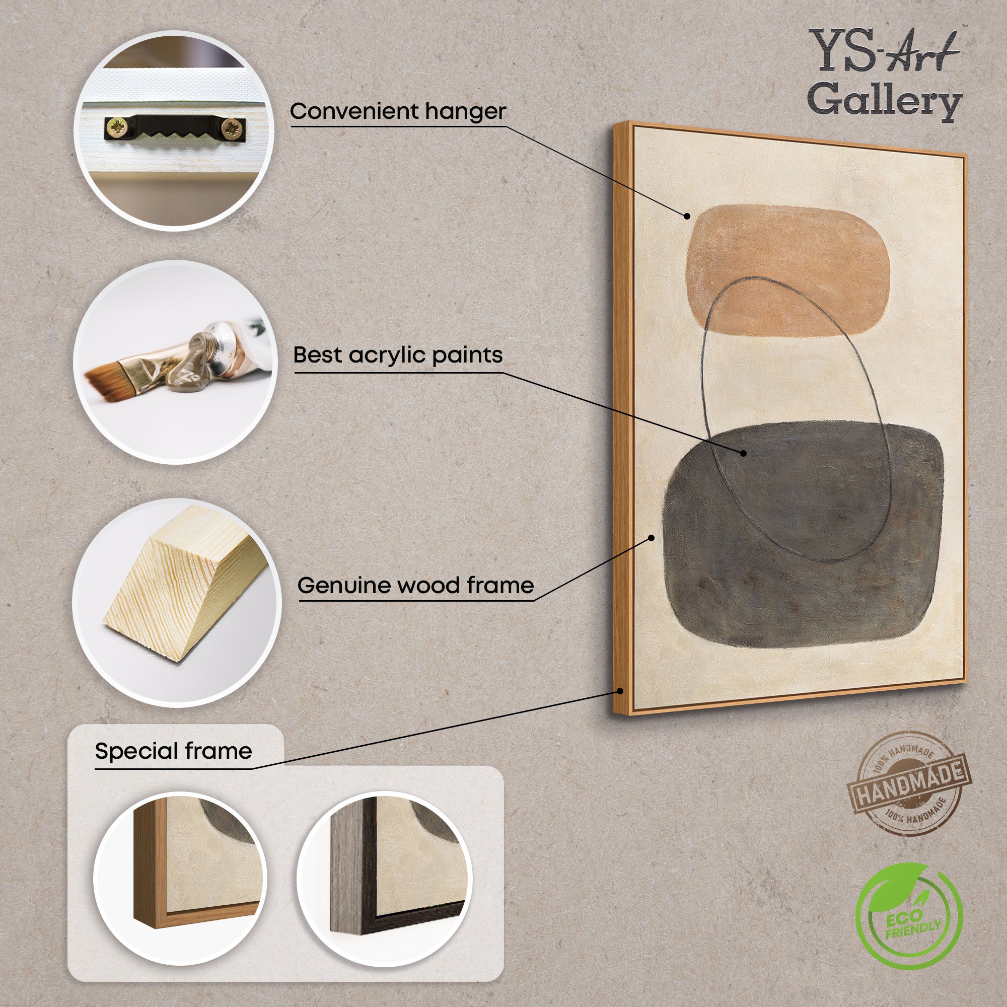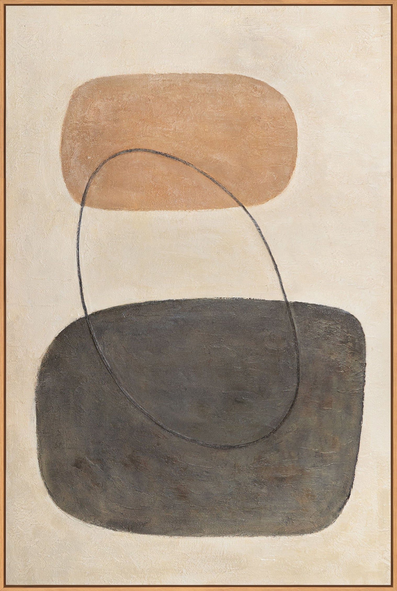 • Modern schilderij in beige en grijs met lijst – Abstracte kunst “Balans van contrasten”