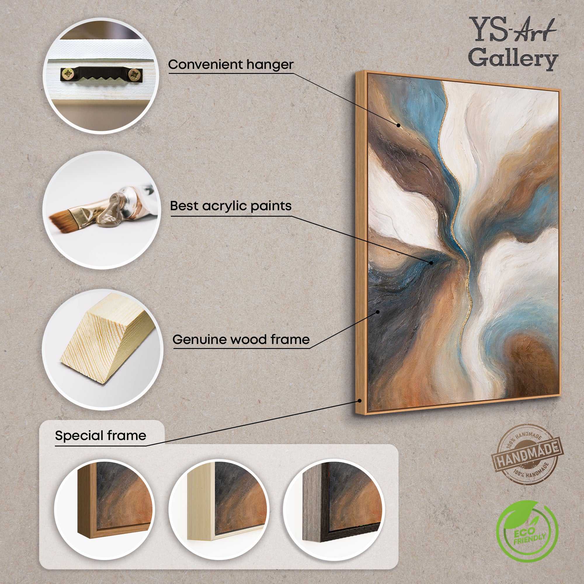 Elk schilderij wordt op hoogwaardig canvas vervaardigd en opgespannen op een stevige houten lijst – direct klaar om op te hangen.