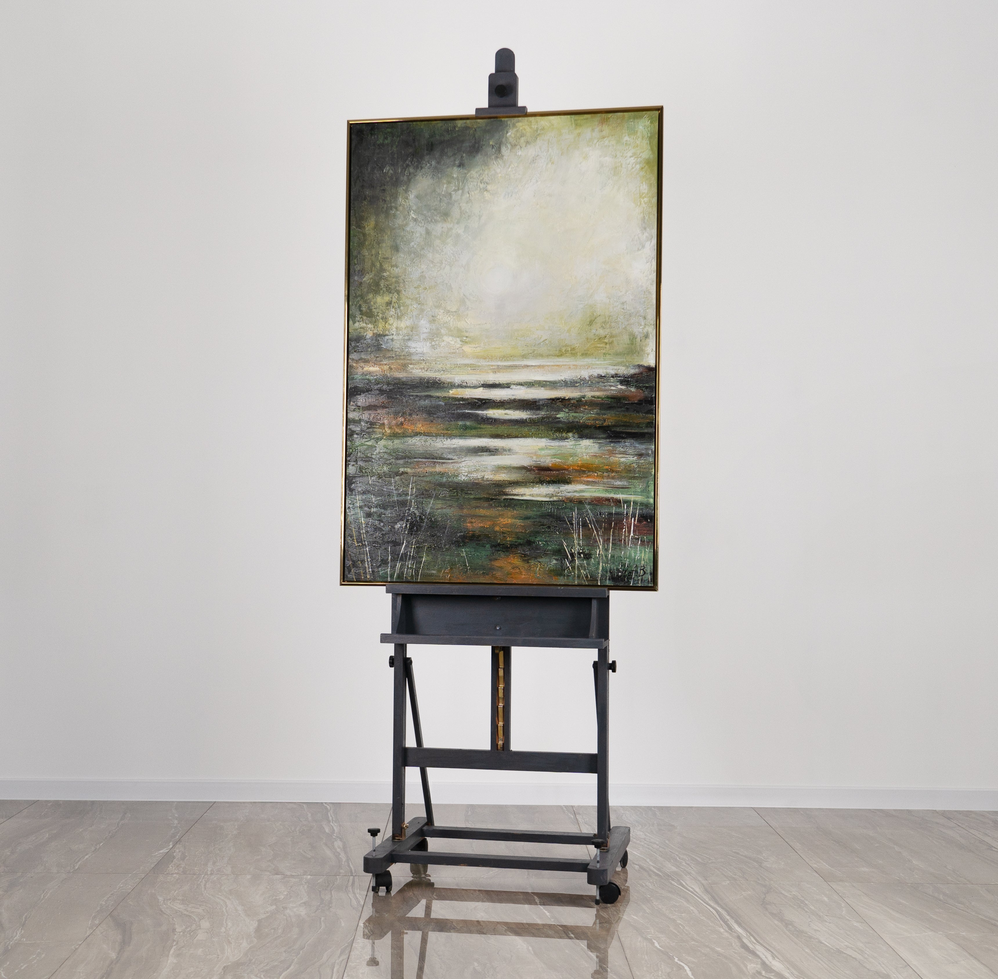 • Handgemalte Acrylkunst Abstrakt Goldene Reflexion