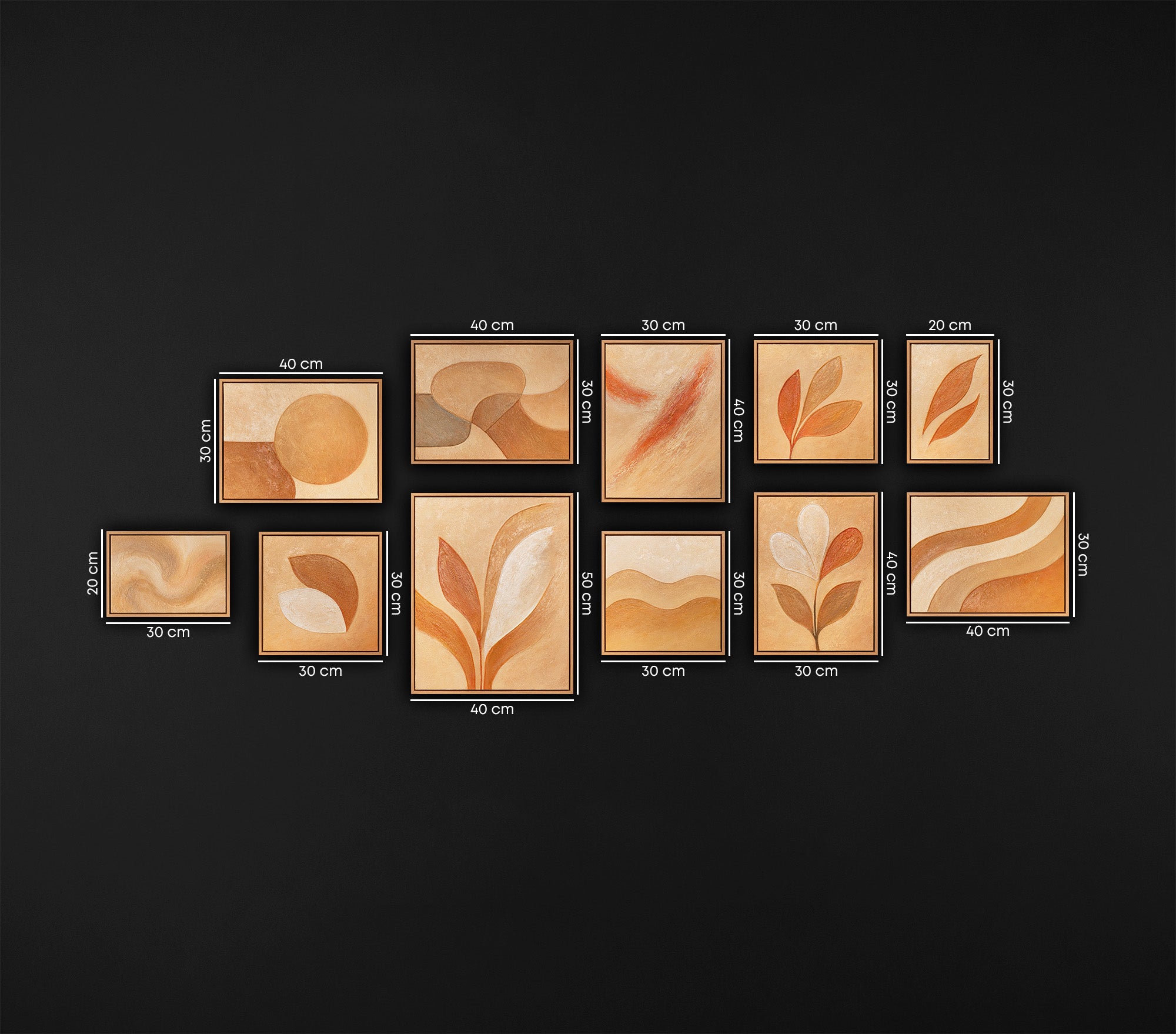 Creëer warmte en elegantie in je interieur met deze terracotta abstract schilderij set van YS Art.