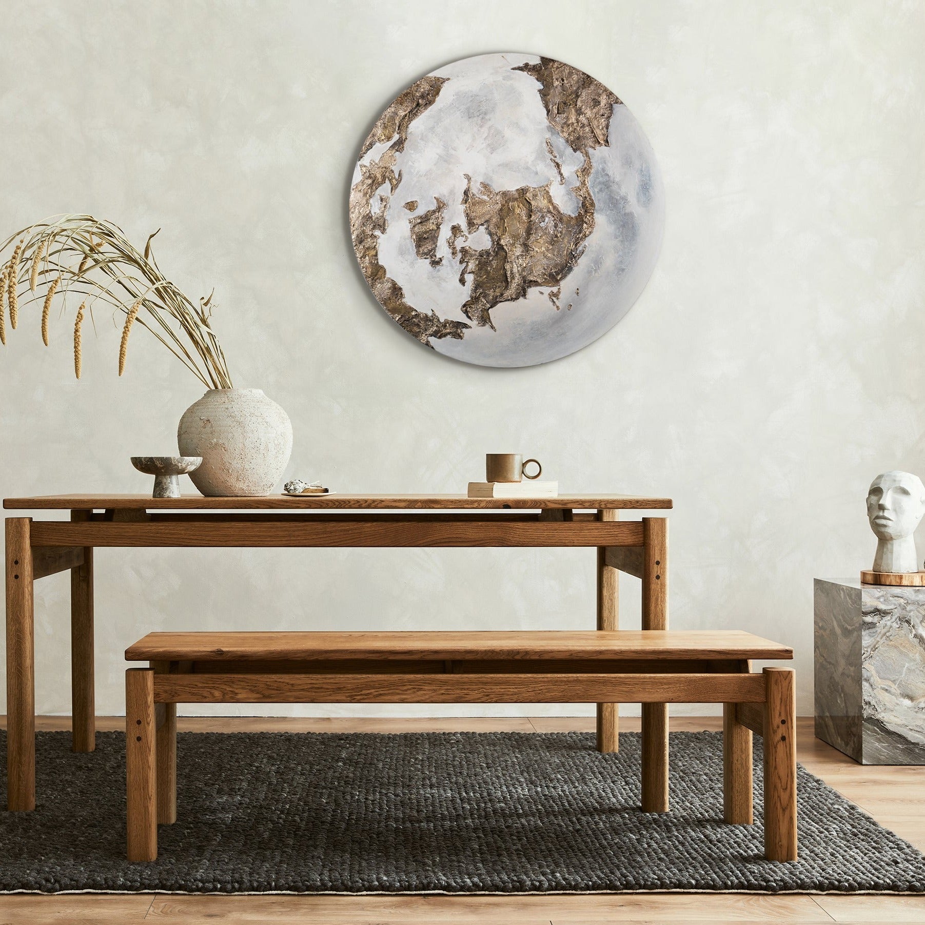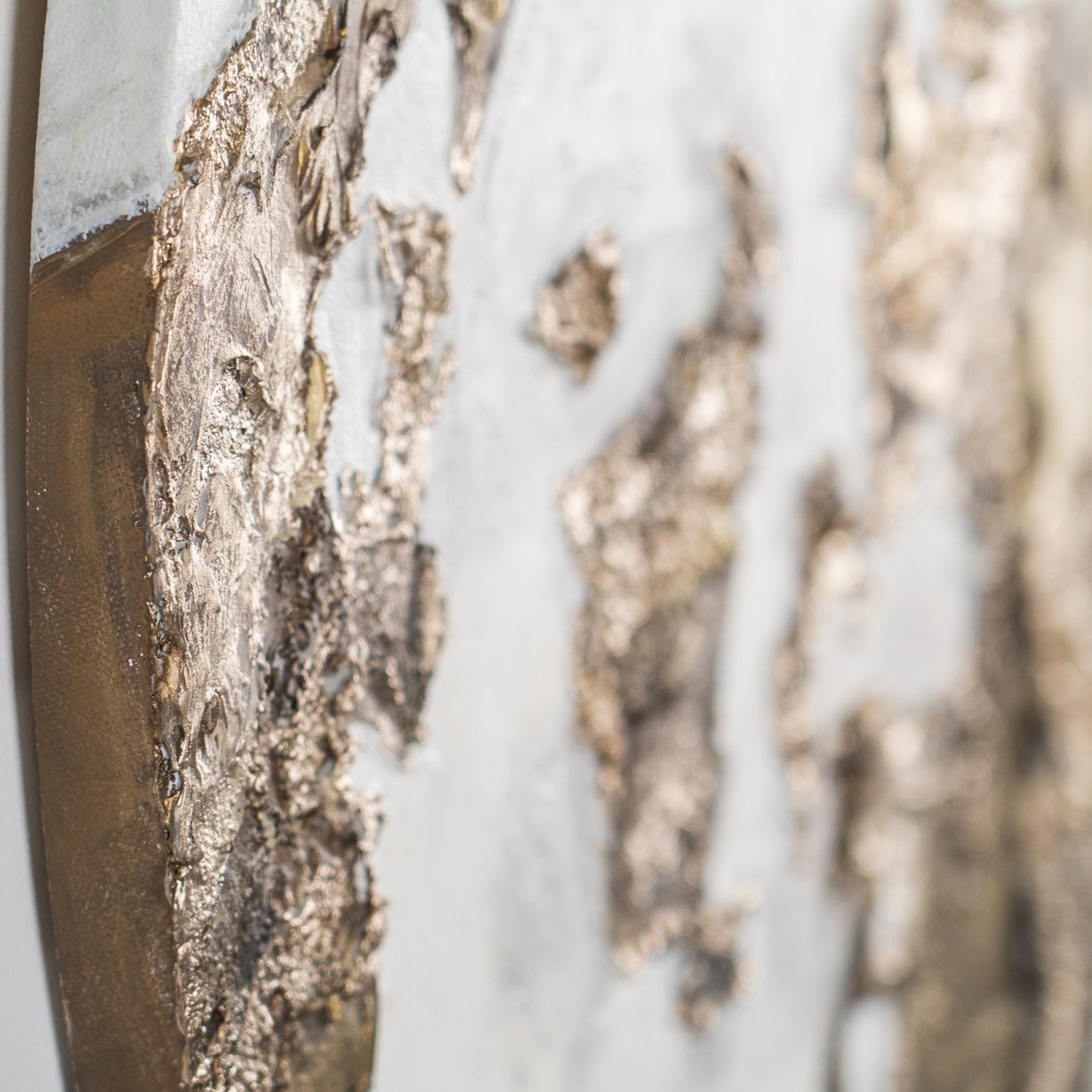 Overdag geniet u van een gelaagd en gestructureerd kunstwerk in een harmonieus kleurenpalet. ’s Avonds komt het schilderij tot leven met een lichte, elegante gloed die uw interieur verrijkt. De verf is milieuvriendelijk, veilig voor binnengebruik en geactiveerd door natuurlijk licht – dus er is geen stroombron nodig.