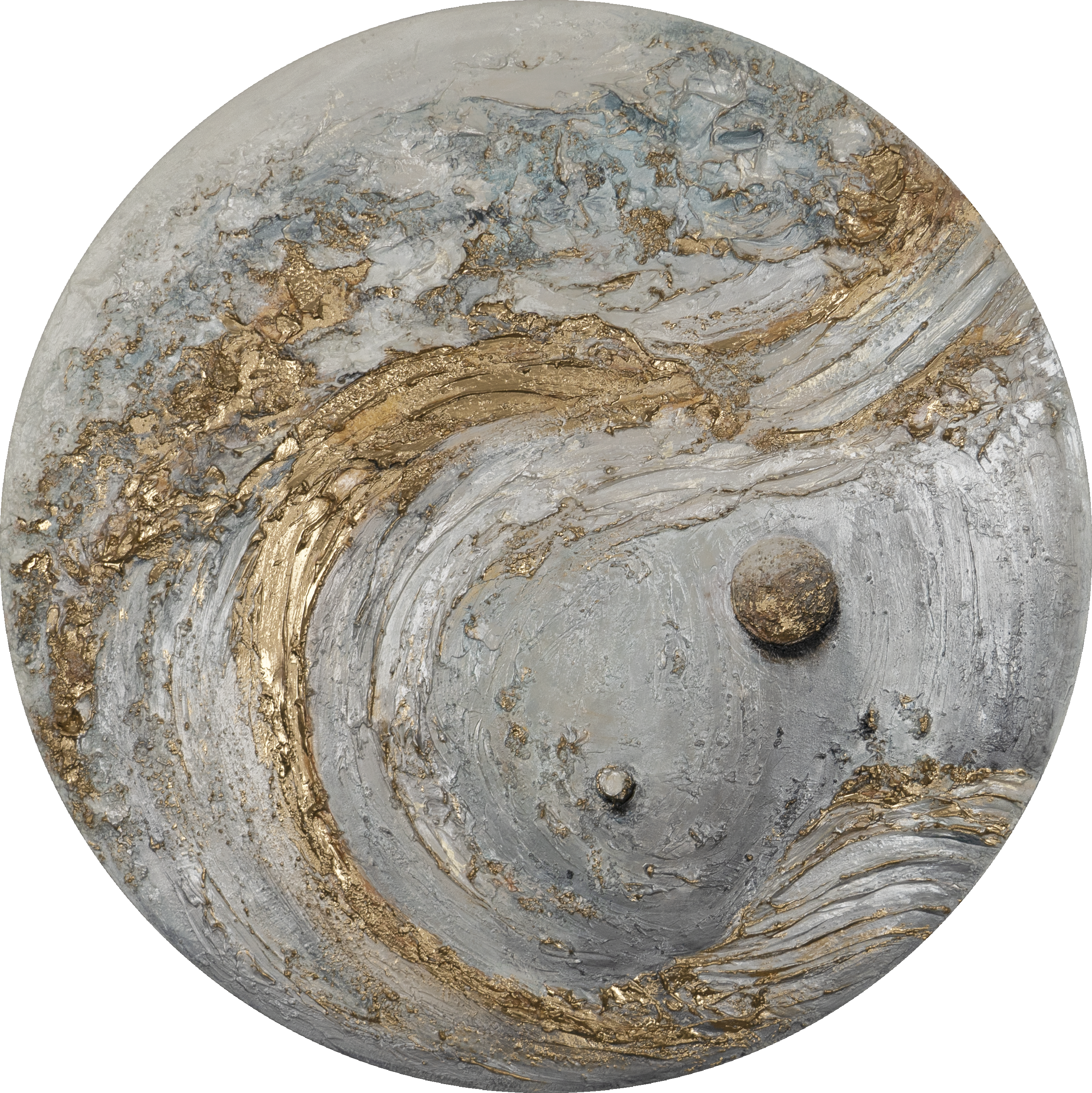 Verlicht uw ruimte met het betoverende kunstwerk "Heliona". Dit handgeschilderde meesterwerk combineert rijke texturen in witte, bruine en gouden tinten, die in het donker oplichten. Een perfecte keuze voor de woonkamer, slaapkamer of kantoor, waar het een unieke sfeer creëert en uitzonderlijk vakmanschap tentoonstelt.